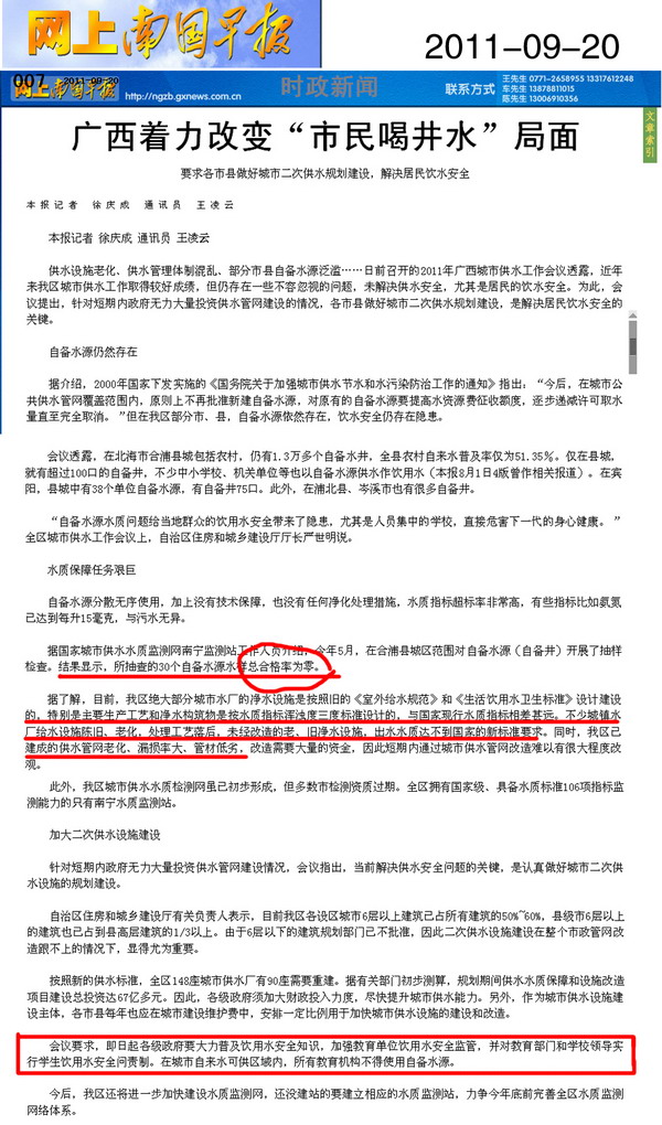 剪报图片:南国早报 广西着力改变“市民喝井水”局面